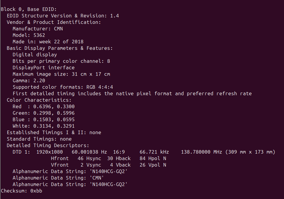 I double-checked both the label on the back of the screen and the output from sudo get-edid | edid-decode, and both confirmed it’s a genuine Innolux N140HCG-GQ2.